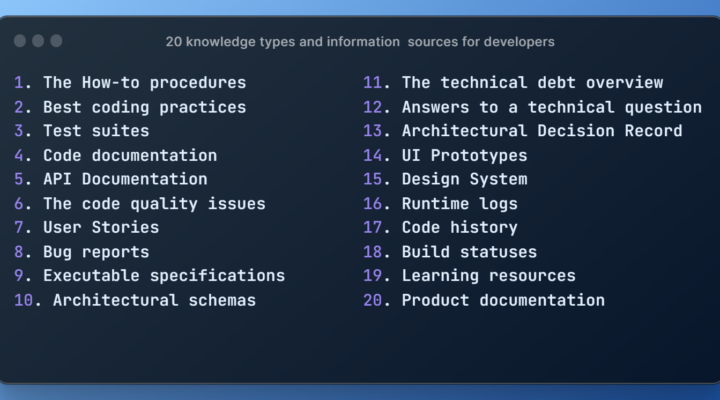 20 knowledge types and information sources for developers In a previous post, we bootstrapped some thoughts about what knowledge was useful for developers in their work. Also, we