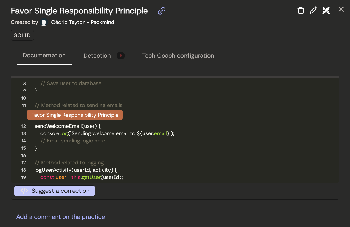 The IDE is where code quality starts, and Packmind Tech Coach ensures that best coding practices are not only understood but consistently applied. It catches issues early, even in AI-generated code, and delivers real-time feedback leveraging craft practices.