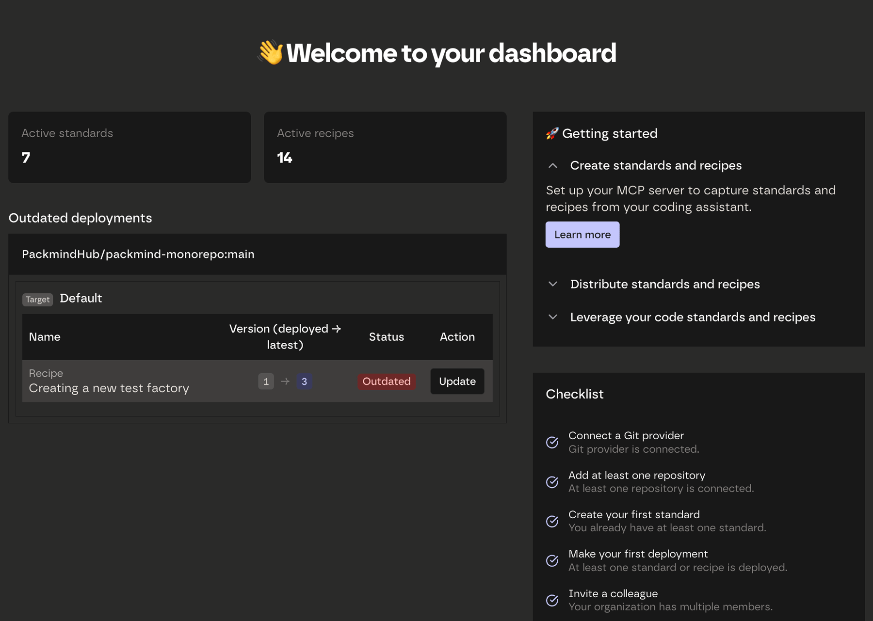 Auto-distribute standards, recipes, and workflows across repos — versioned, synced, and drift-free.