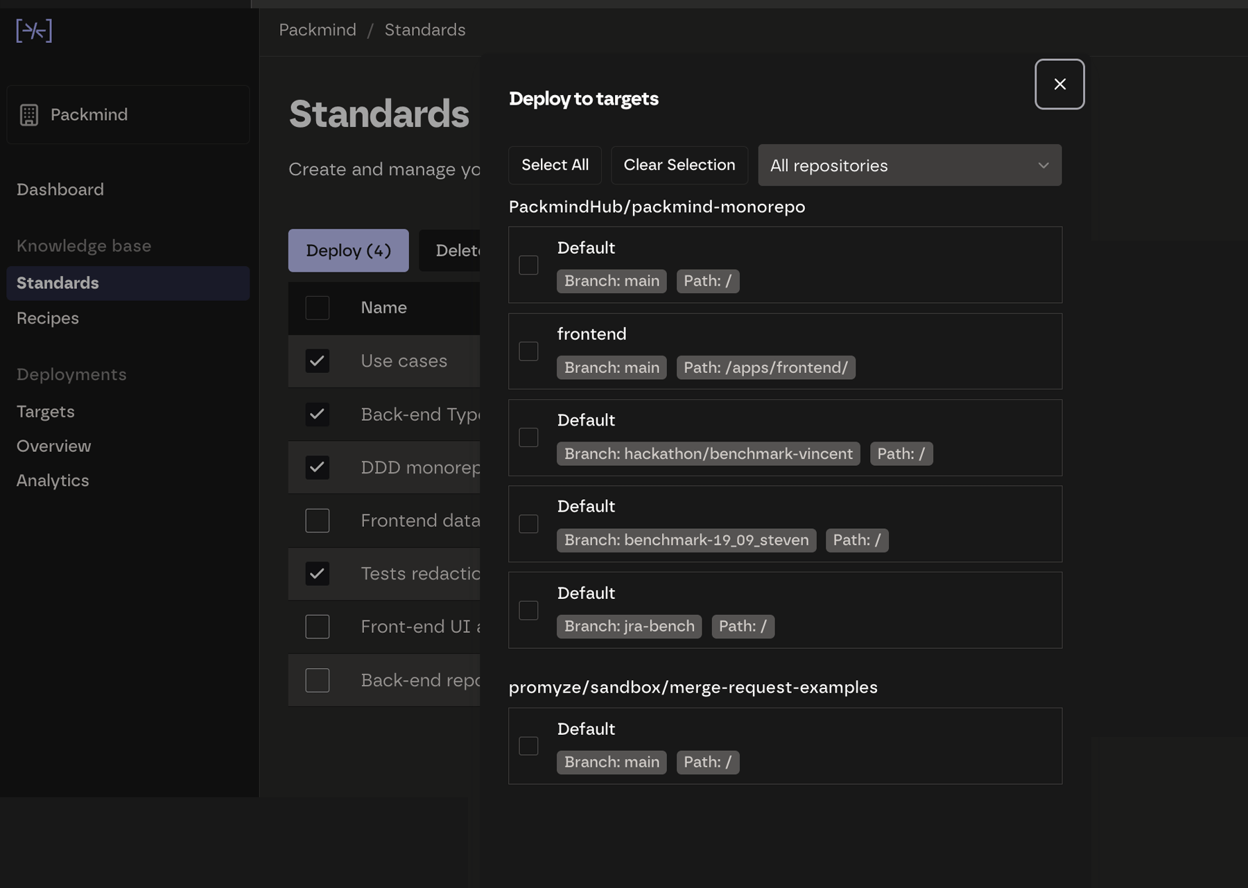 Automatic distribution. Monorepo or many microservices—Packmind propagates standards and prompts to the right repo/folder so AI always has the latest context.